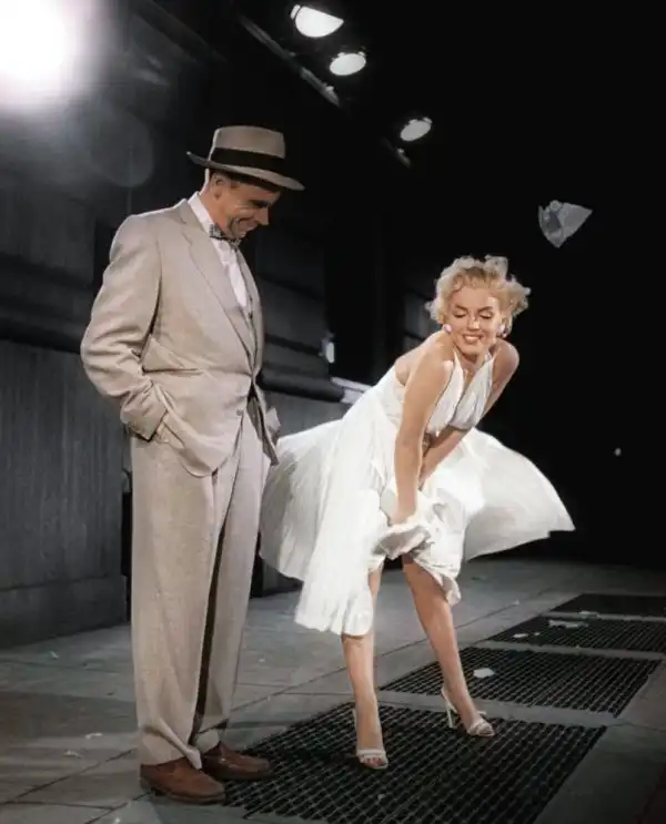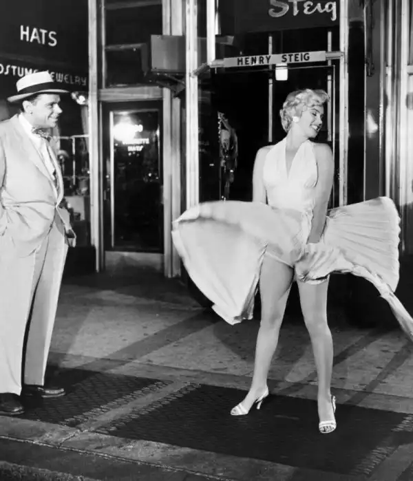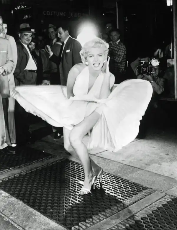 Продюсер кинокартины, которая называлась "The Seven Year Itch" (Зуд седьмого года), решил сделать рекламный трюк для раскрутки фильма и пригласил на съемку сцены всех известных фотографов Нью-Йорка, пообещать им в буквальном смысле заглянуть под юбку знаменитой актрисы. 15 сентября 1954 года на углу 52-й и Лексингтон-авеню собралась многотысячная толпа фотографов и поклонников Мерлин Монро, которая без остановки кричала, свистела и улюлюкала. Актриса забывала слова, шла не в ту сторону и никак не могла сосредоточиться (это она делала весь фильм, а не только во время съемок той сцены). Было отснято около 40 дублей, но из-за постоянного шума толпы сцена в фильм так и не попала. Ее переснимали еще раз в павильоне студии 20th Century-Fox.