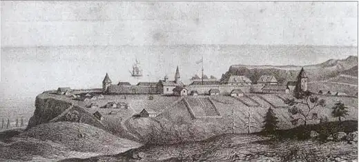 В первые годы после этого события, кроме частокола, были построены дом правителя, казармы, кладовые, мастерские. Вне стен крепости были сооружены баня, кожевенный завод, ветряная мельница, скотный двор. Позднее при крепости возникла верфь, на которой строили небольшие суда для колониальной флотилии.