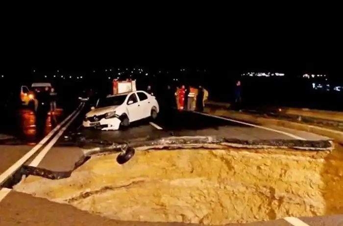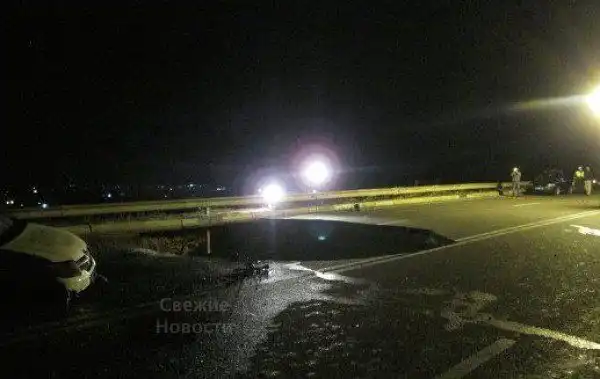 Ночью с субботы на воскресенье на объездной автодороге Симферополь - Николаевка произошло жуткое происшествие - обвал дорожного полотна. В образовавшийся котлован провалился автомобиль "Жигули", внутри которого на момент аварии находилось 8! человек. К сожалению, шесть человек погибли на месте трагедии, а годовалый мальчик и девочка 12 лет - госпитализированы.