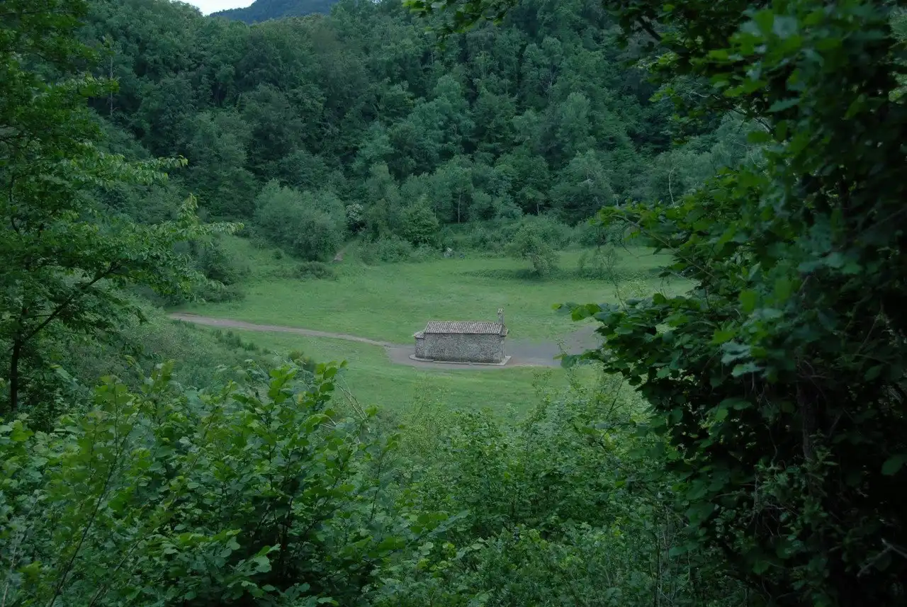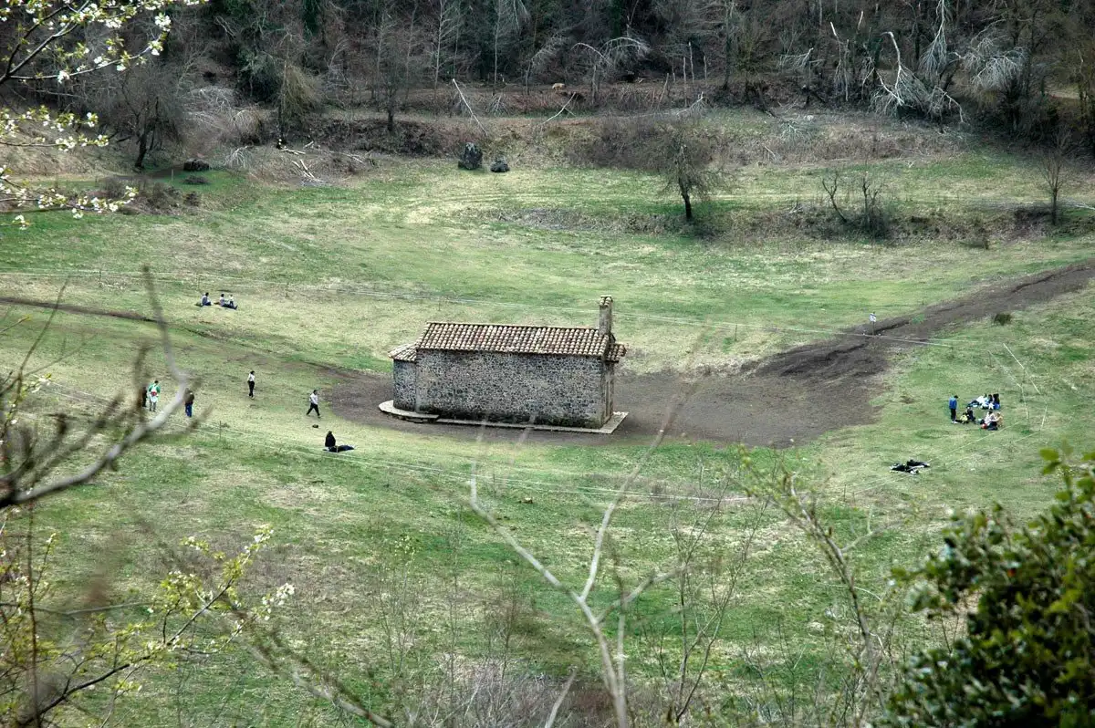 Здание было разрушено в 1428 при землетрясении Каталонии и восстановлено в 1865. Расположенный в центре потухшего вулкана в Каталонии, кратер будто открывается, чтобы показать крошечную каменную лачугу. Нет ни одного здания в зоне экономического бедствия, только хижина отшельника. Покрытая плотной растительностью по всем сторонам, лачуга причудливо расположена на плоской бесплодной земле.