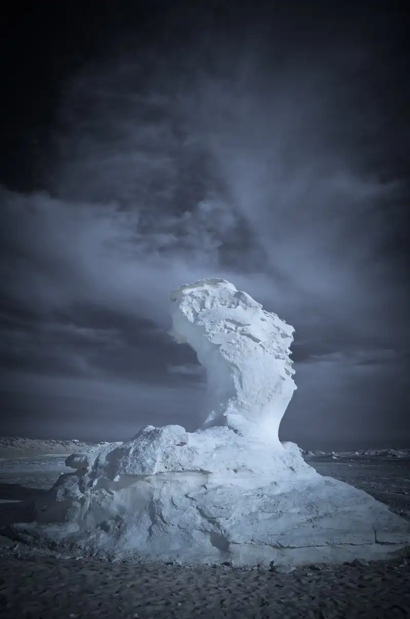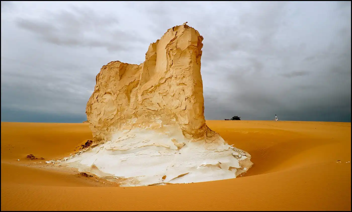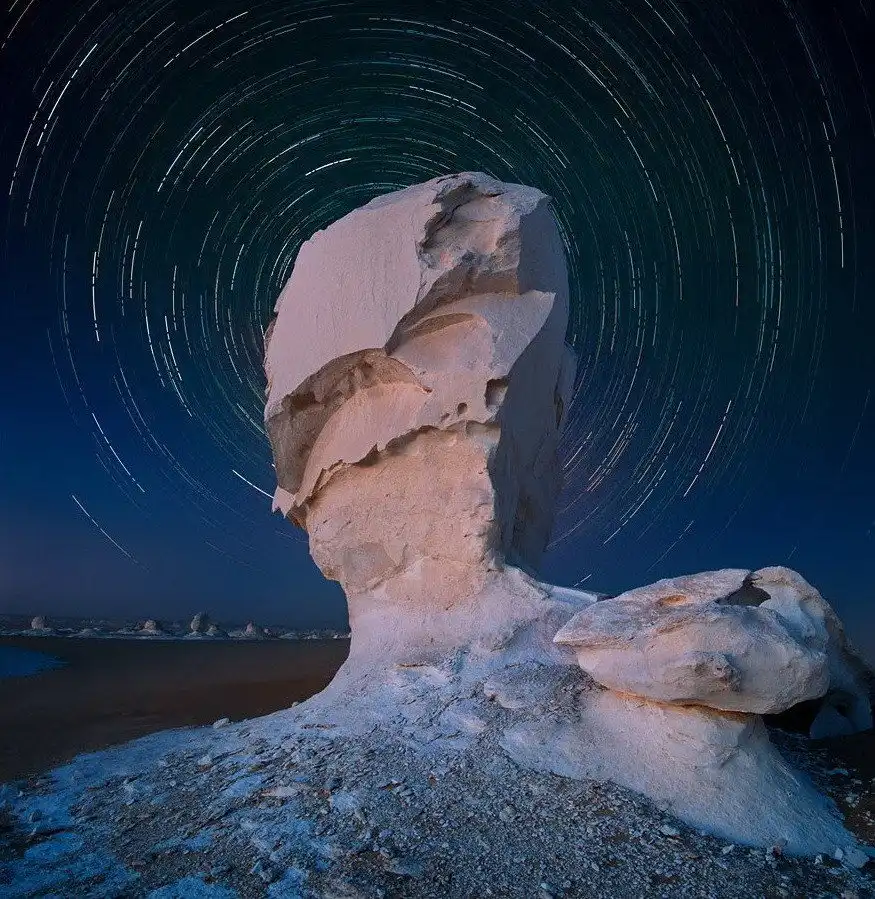 Бе́лая пусты́ня в Египте— небольшой участок на востоке пустыни Сахара площадью примерно 300 км2. (10 км x30 км), лежащий по дороге между оазисами Бахария и Фарафра. Расстояние от Каира до Белой пустыни 500 км.; Белая пустыня известна причудливыми карстовыми* образованиями. Много миллионов лет назад здесь было дно океана, и белая порода — это останки морских микроорганизмов. За века ветер и пески превратили бывшее дно моря в подобие поверхности какой-то другой планеты. Пустыня имеет бело-кремовый оттенок — массивная меловая порода образовалась в результате периодических песчаных бурь в районе.