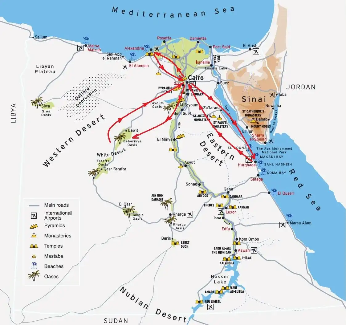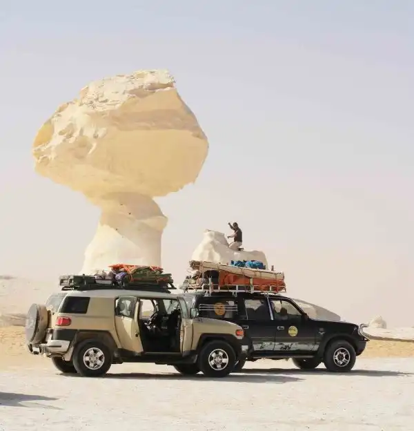 Лучшее время для путешествий по Белой пустыне – зима. Летом здесь безумно жарко, вплоть до 60 градусов. По количеству туристов Белая пустыня может конкурировать с пляжами Шарм-эль-Шейха. Путешественники обычно отправляются туда на классическое джип-сафари или неспешно едут туда на верблюдах.