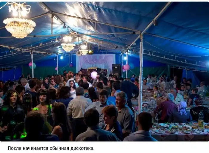Продолжительность празднества сократилась с недели до двух дней. Но и сейчас это время разделено на две части. Первое застолье проводится в доме невесты без жениха, второе — в полном составе в доме жениха. В промежутке между этими событиями проходит регистрация брака.