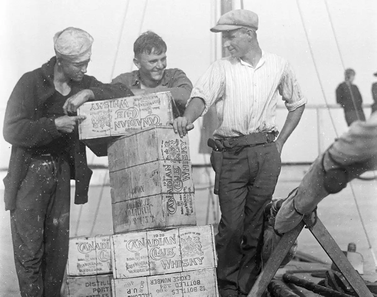 Алкоголь конфискованный у бутлегеров в порту Нью-Йорка.
