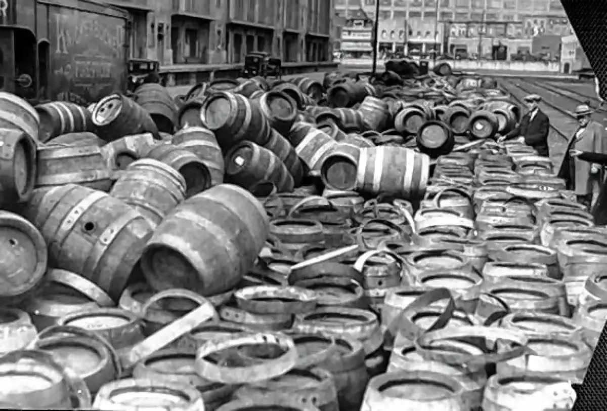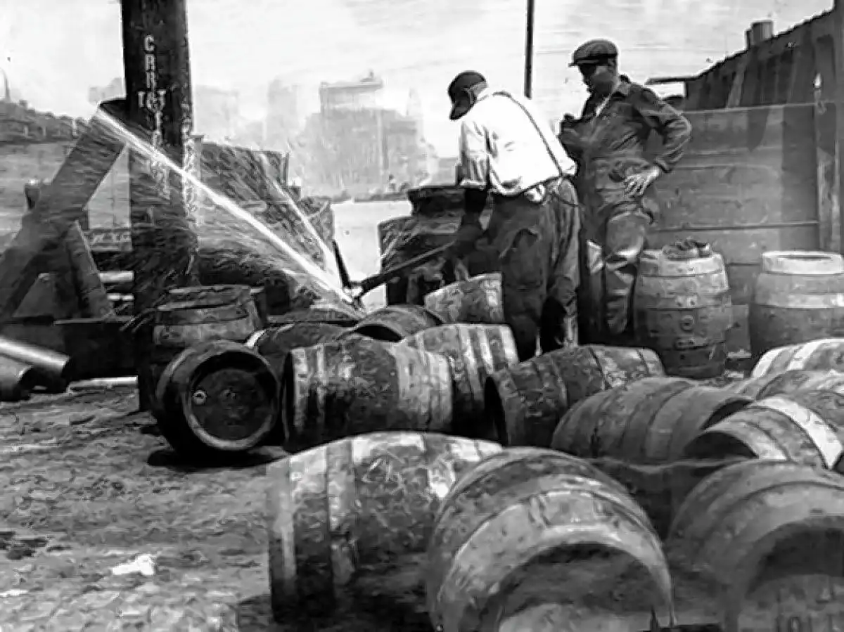 Поначалу выпивку демонстративно выливали в канализацию или прямо на землю, позируя под вспышки фотокамер и неодобрительный гул многочисленных зевак. И пока дело касалось ящика другого это не составляло никаких проблем. Со временем журналисты уже не бежали снимать каждую операцию, да и работа агентов превратилась в ежедневную рутину, но тем не менее, уничтожать конфискованный алкоголь на месте было куда легче, чем связываться с его описью и дальнейшей транспортировкой на специальный склад. А вот что было делать, если конфисковали по крупному? Как вылить на землю содержимое грузовика или целого ангара?