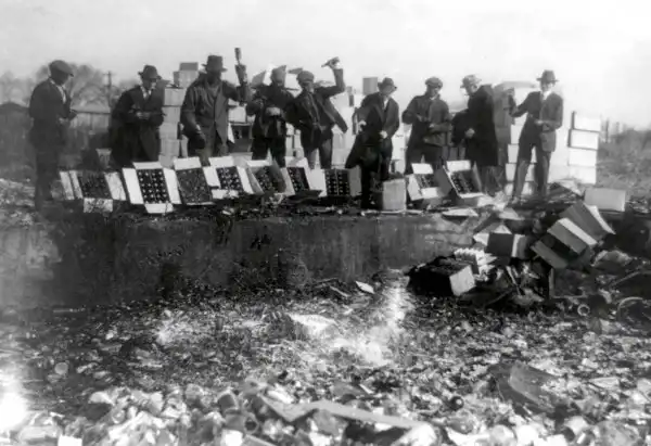 Уничтожали конфискованное, как в фильме "Операция "Ы" и другие приключения Шурика", т.е. разбив вдребезги. Выделенные на эту веселую работу сотрудники целыми днями занимались только тем, что били бутылки на втором пирсе. Для этого даже построили небольшую кирпичную стену, в которую нужно было кидать бутылки. Содержимое разбитой тары стекало через щели в настиле в воды нью-йоркского залива, а битое стекло лопатой скидывали в воду. Если же рука рабочего дрогнула или бутылка оказалась особенно крепкой и улетала в воду в целости и сохранности, то агенты, наблюдавшие за работой, расстреливали ее из револьверов. Журналисты окрестили это место "пирсом скорби", где "люди бьют бутылки, чтобы дать возможность насладится беззаботной жизнью рыбам и русалкам". Руки рабочих так уставали от непривычного занятия, что на следующий день многие из них не могли нормально выполнять свои прямые обязанности. Смех, смехом, а вы попробуйте покидайте целый день бутылки в стену.