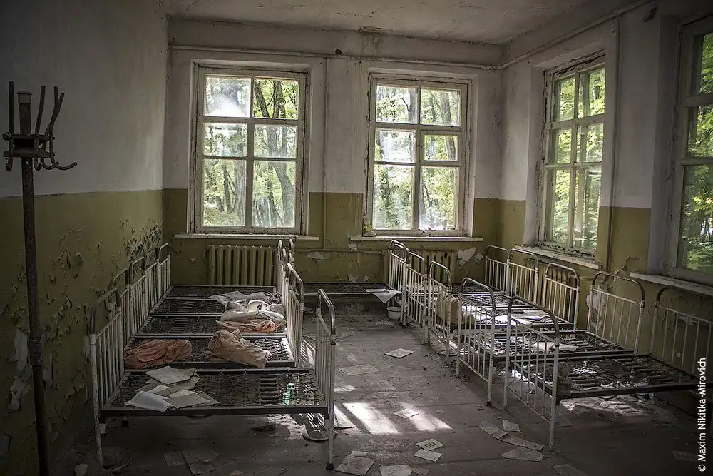В четырех километрах от Чернобыльской атомной электростанции находится заброшенное село Копачи. Во время аварии на ЧАЭС село попало в зону так называемого "западного следа" — одного из путей перемещения радиоактивных выбросов по розе ветров; прямо за Копачами когда-то стоял знаменитый "Рыжий лес", названный так из-за того, что он весь сгорел и высох от радиации.