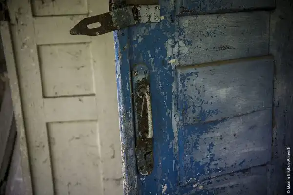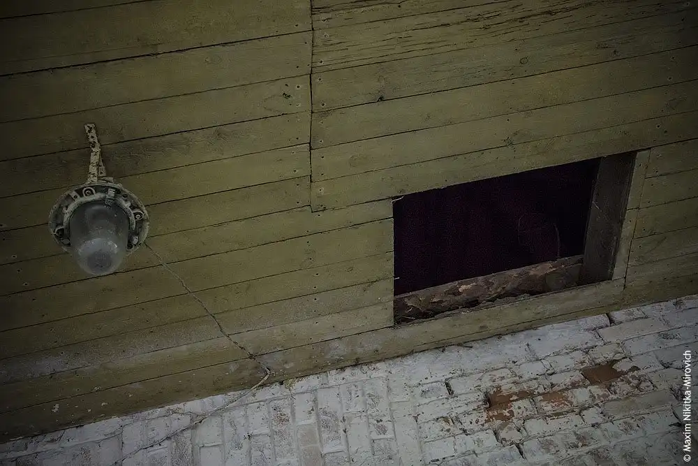 Люк в потолке над крыльцом. После дождя из люка течет вода, смывая с крыши всякую грязь, и из-за этого радиоактивный фон в этом месте весьма высок. Дозиметр насчитал 3000 микрорентген в час и собрался считать дальше, но мы больше не стали ждать.