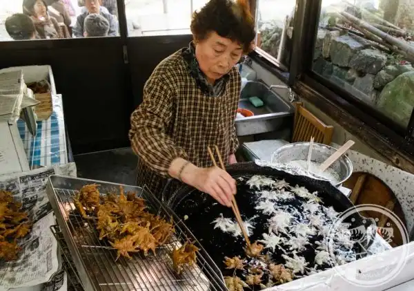 Японцы говорят, что всё, что обжарено во фритюре, намного вкуснее. Но кто мог подумать, что это относится и к кленовым листьям? Однако блюдо вполне реальное, оно называется Момидзи (Momiji), и это осенний японский деликатес.