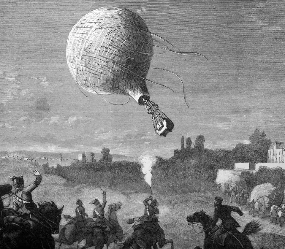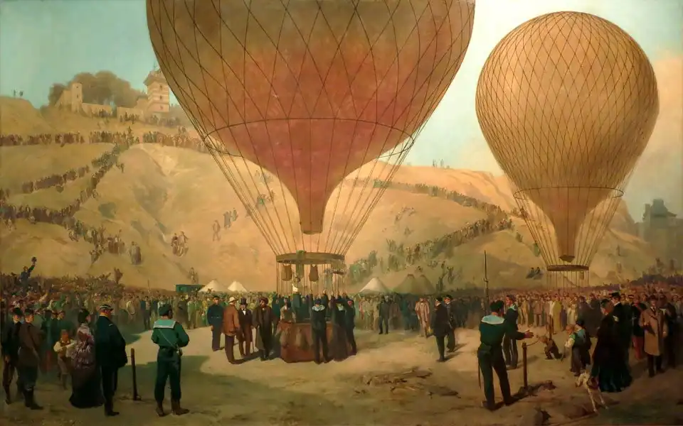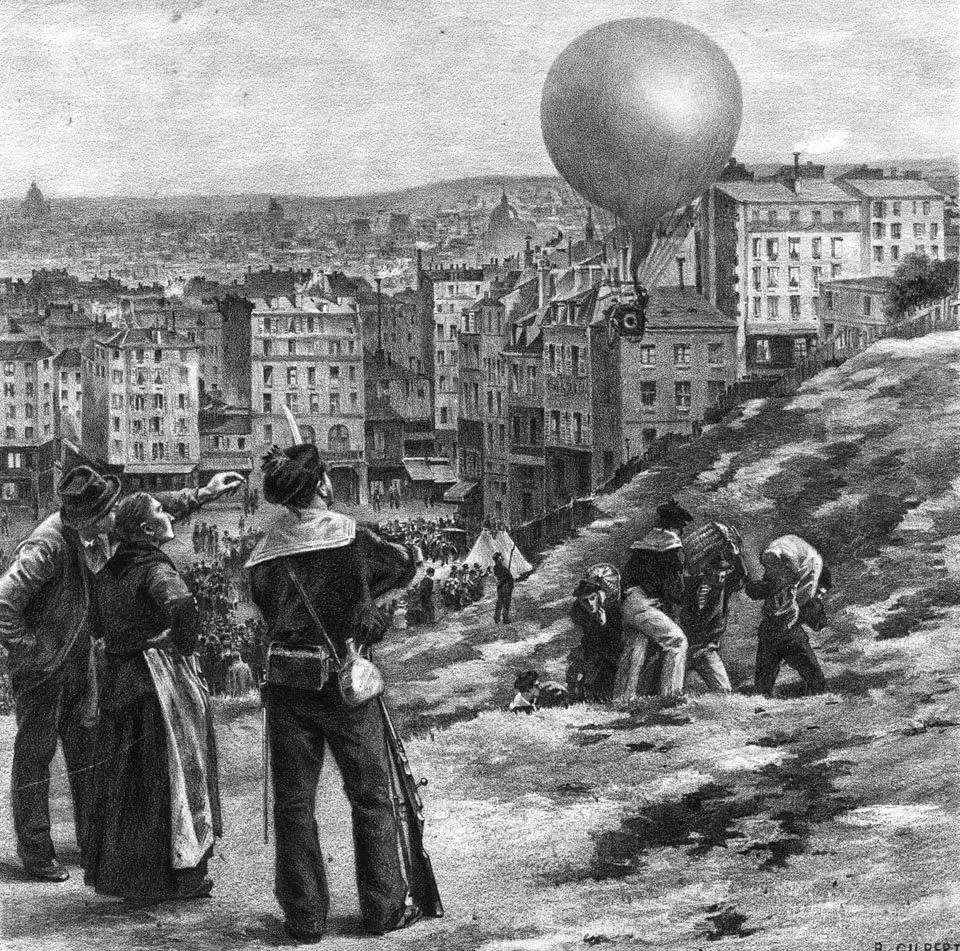 8 октября 1870 года из осажденного прусаками Парижа вылетел аэростат-монгольфьер, в гондоле которого, кроме пилота, находился министр внутренних дел Франции Леон Гамбетта. Через два дня аэростат приземлился в Туре, где Гамбетта возглавил сопротивление оккупантам и организовал набор добровольцев в новую республиканскую армию взамен армии Наполеона, капитулировавшей в Седане. На размещенной вверху картине французского художника Жюля Дидье Жаке изображен Гамбетта (в коричневом длиннополом пальто) и два провожающих, стоящие слева от гондолы аэростата.