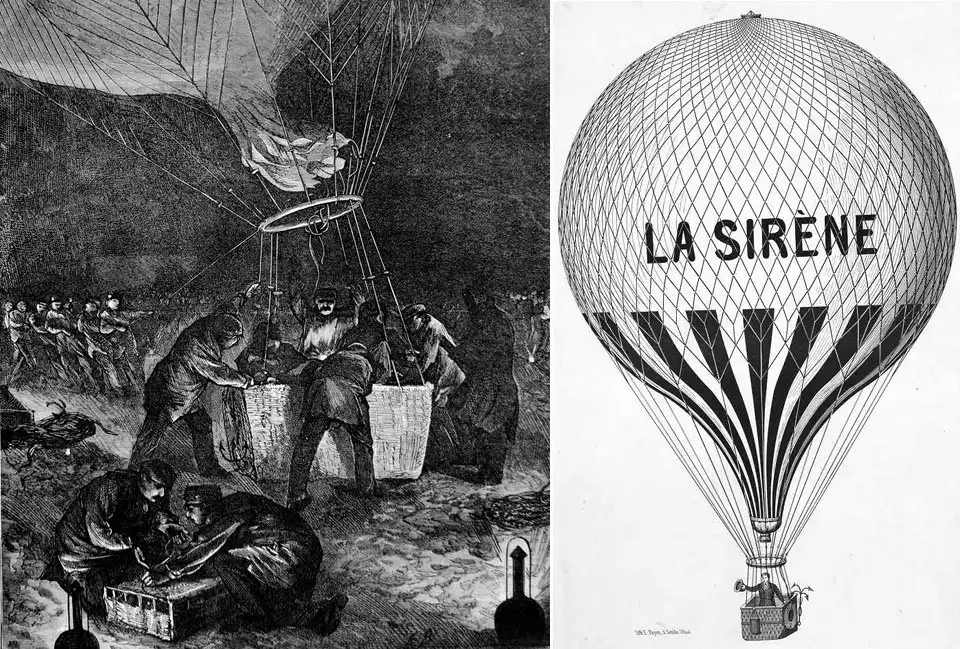 Уже 23 сентября, всего через четыре дня после окружения города из Парижа стартовал аэростат "Нептун", пилотируемый Жюлем Дюру. Правда, этот аэростат был сделан еще до блокады, а наполняли его непосредственно на площади. Он успешно пересек линию фронта и приземлился в городе Эвре. 27 сентября вылетел второй баллон, который, помимо пилота вез документы и почтовую корреспонденцию.
