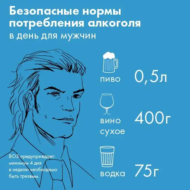 Всемирная организация здравоохранения (ВОЗ) объявила новые данные о безопасной дозе алкоголя. Ежегодное количество алкоголя, потребляемого мужчиной, возросло до 10 литров чистого спирта. Как пояснил Вадим Дробиз, директор Центра исследований федерального и региональных рынков алкоголя (ЦИФРРА), что эта норма эквивалентна одной бутылке водки в неделю.