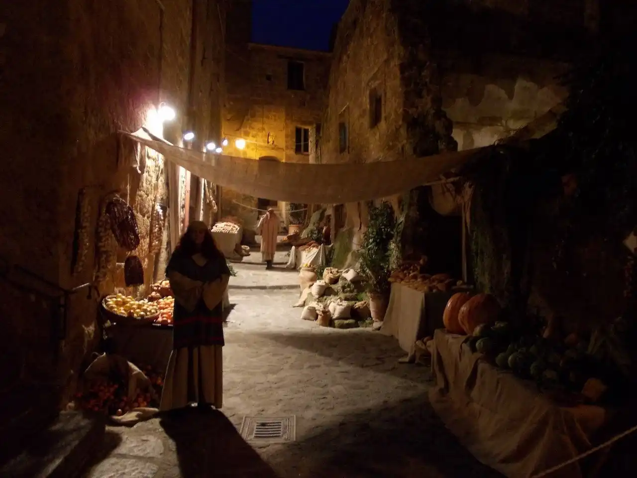 Чивита ди Баньореджо сохранил свой средневековый облик, каменные дома жмутся друг к другу, церковь Сан Донато V века выходит на главную площадь, дворец епископа и мельница убеждают нас, что время здесь замерло.