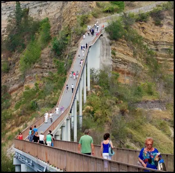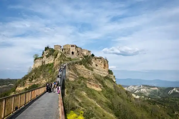 Здесь практически никто не живет, но Чивита ди Баньореджо превратился в бойкое туристическое место с отелями, пиццериями, тратториям и сувенирными магазинчиками. Добраться до города можно только по пешеходному мосту, который был построен относительно недавно — в 1965 году.