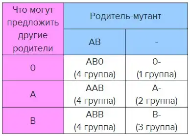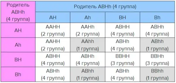 Пример работы бомбейского феномена №2. Если оба родителя имеют 4 группу, то у них не может получиться ребенок 1 группы.