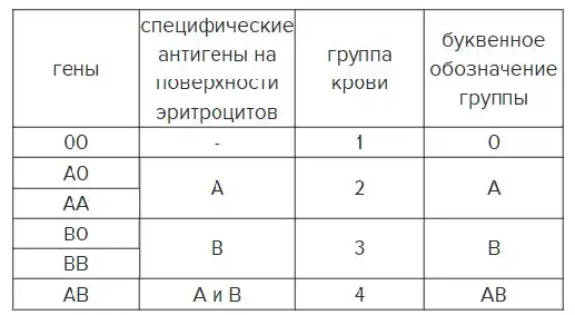 Каждый человек имеет два гена группы крови – один, полученный от матери (А, В, или 0), и второй, полученный от отца (А, В, или 0).