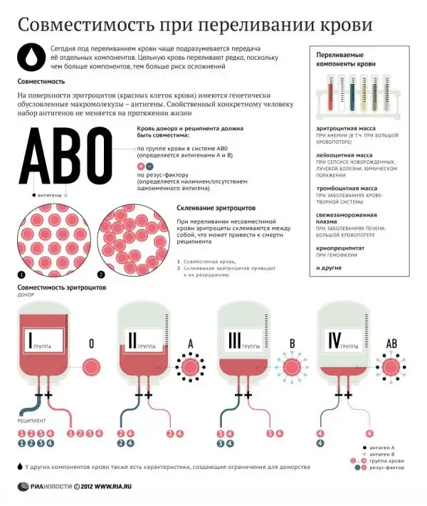 Тип крови определяется по наличию в крови определенных антигенов. Антигены A и B очень распространены, что облегчает классификацию людей в зависимости от того какой антиген у них присутствует, тогда как у людей с типом крови O нет ни того ни другого антигена. Положительный или отрицательный знак после группы означает наличие или отсутствие резус-фактора. В то же время, помимо антигенов A и B возможно присутствие и других антигенов, и эти антигены могут вступать в реакцию с кровью определенных доноров. Например, у кого-то может быть группа крови A+, и при этом в крови отсутствует другой антиген, что говорит о вероятности неблагоприятной реакции с донорской кровью группы A+, содержащей этот антиген.