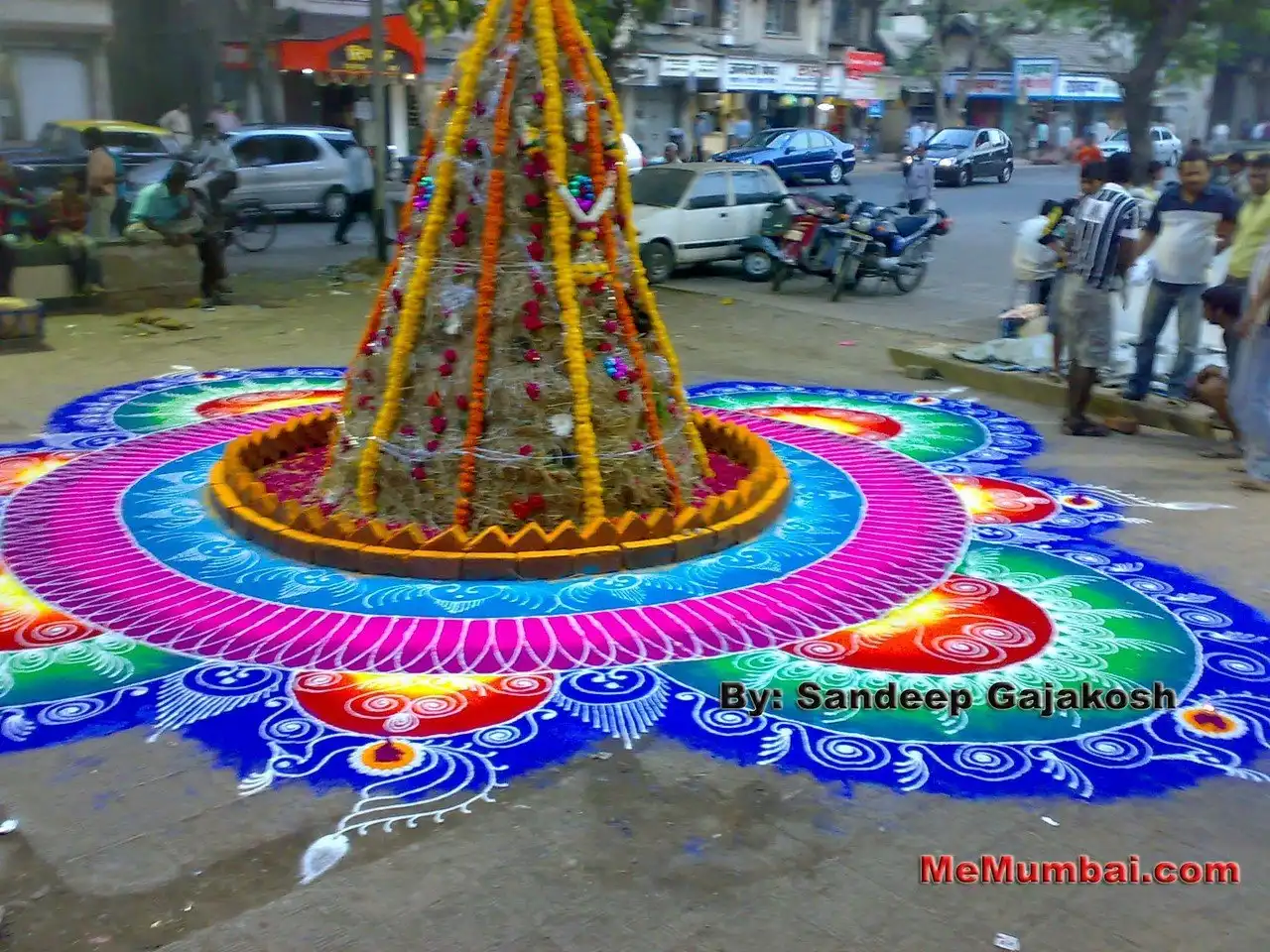 Во время фестиваля Ганеша на улицах Пуне над созданием узоров трудятся профессиональные художники.