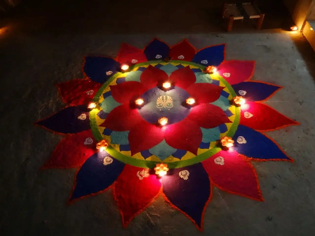 Чаще всего ранголи делают на праздник Дивали (Дипавали), в день, когда по всей стране зажигаются миллионы свечей и лампад в память о возвращении царя Рамы с острова Шри-Ланка после победы, одержанной над демоном Раваной. Поэтому горящий светильник – также немаловажный элемент узора.