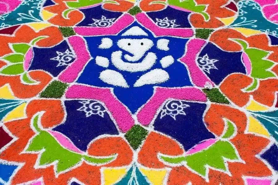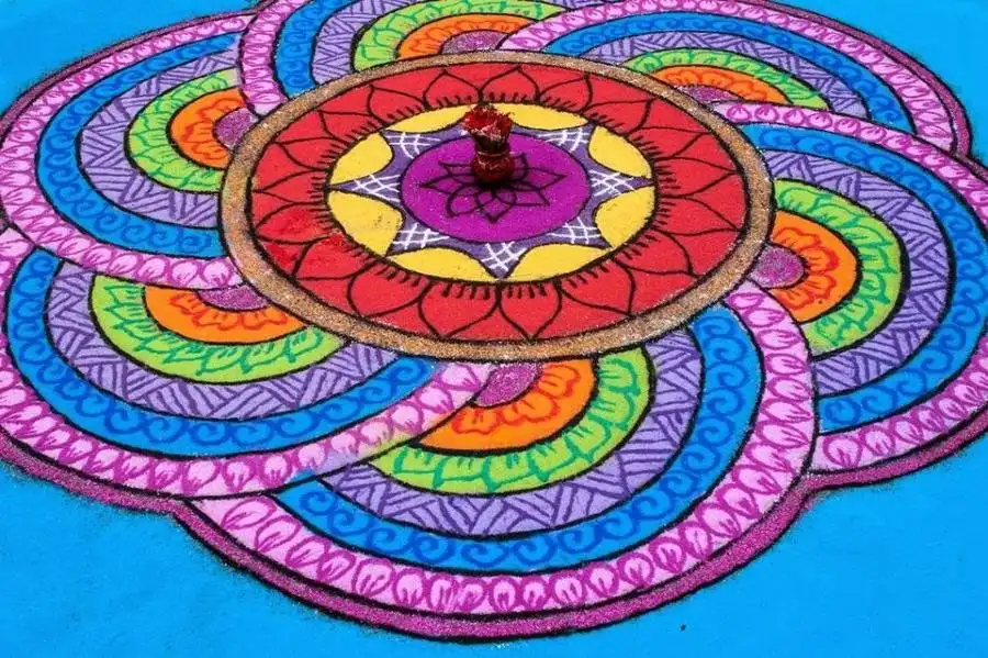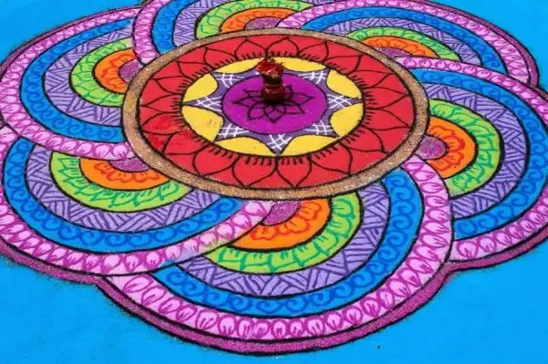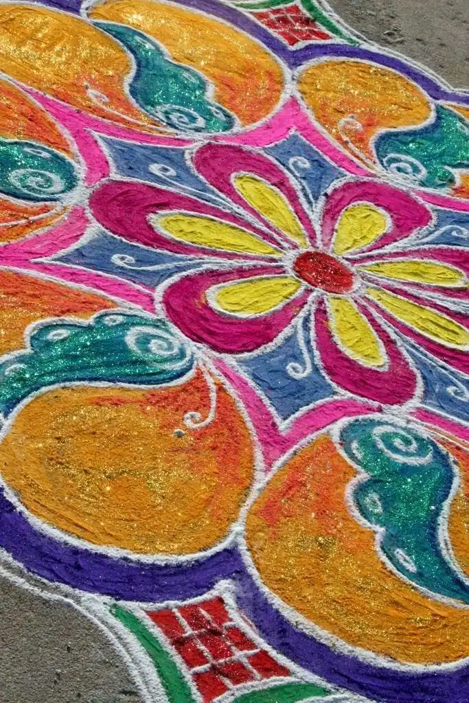 Ранголи – это больше, чем просто искусство, это традиционная молитва, некое таинство и трепетный процесс создания красочных и ярких орнаментальных рисунков из цветов, риса и рисовой муки.