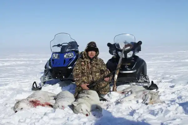 Однажды волк чуть не загрыз меня. Это не бахвальство – через такое проходят почти все охотники. Дело было так: мы гонялись за стаей, каждый взял на себя одного волка, и помчался за ним. Я преследую свою цель десять, пятнадцать, двадцать километров, но волк хитер – запутывает след, несется извилистыми путями. Наконец, взял я его на видимость. Начал снимать на телефон, и вдруг – тот исчез из вида. Мгновение прошло! — он возле снегохода, прямо позади меня. Я попытался развернуться – зверь прыгает на меня, еле успеваю дать по газам. Волк поскальзывается, но прокусывает капот. Выстрел. Вот так, маленькая ошибка могла стоить мне жизни. Но снегоход он все-таки повредил. Укус волка – на 5-6 килограммов.