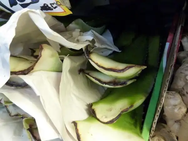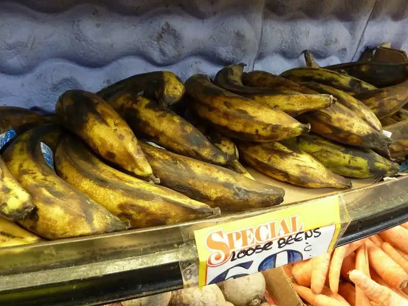 Это тоже хорошая штука. Думаете это гнилые бананы на выброс? Нифига, это их продажный вид. Их так продают. Это платано (платайн), семейство банановых, но существенно больше по размеру и другие на вкус. В странах Карибского бассейна и Южной Америки они заменяют картошку.
