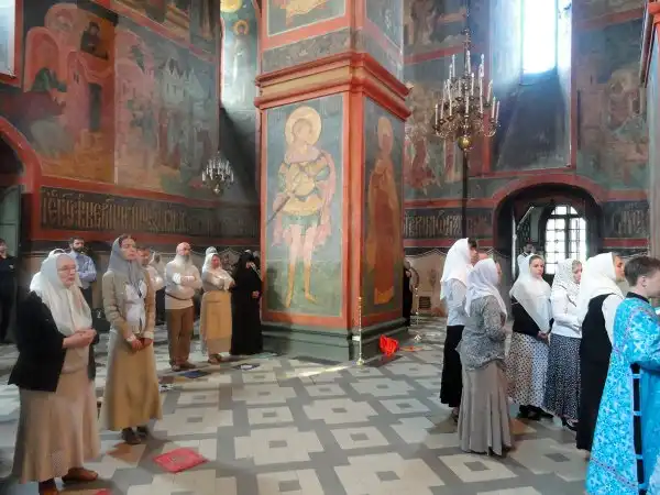 В этот солнечный день от Благовещенского собора Кремля после торжественной службы двинулась многочисленная процессия с икoнами и хоругвями, провожая гостившую более полувека (67 лет) в Москве икону Смоленской Одигидрии Торжественная процессия остановилась на Девичьем поле у митрополичьего Саввина монастыря. Здесь она была передана в руки смолян.