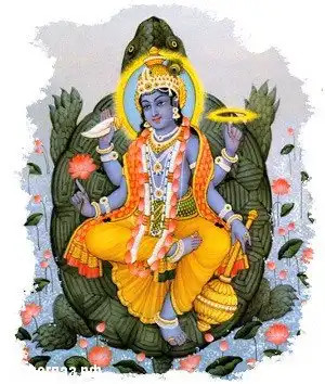 2) Курма («черепаха»). Чтобы спасти погибшие во время потопа ценности, Вишну убеждает богов и асуров объединиться. Вместе они начинают пахтать океан горой Мандару в качестве мутовки, обмотав вокруг неё змея Васуки. Чтобы гора не погрузилась в океан, Вишну превратился в огромную черепаху и, опустившись в воду, поддерживал ее. Через 100 лет работы из океане появились амрита, Лакшми, луна, апсара Рамбха и некоторые другие священные существа и предметы. Приняв облик небесной красавицы, Вишну отвлек асуров, позволив отведать напиток бессмертия только богам.