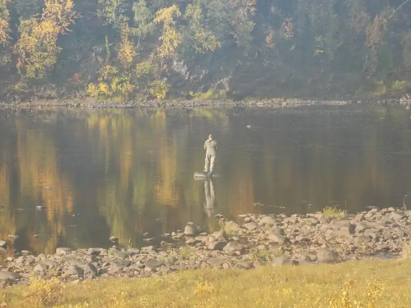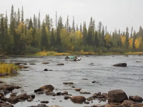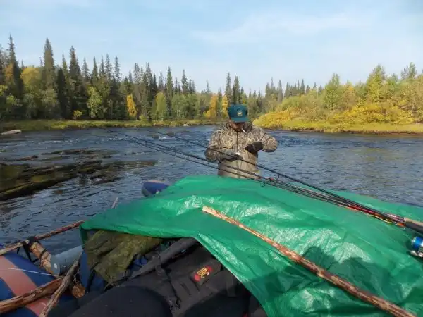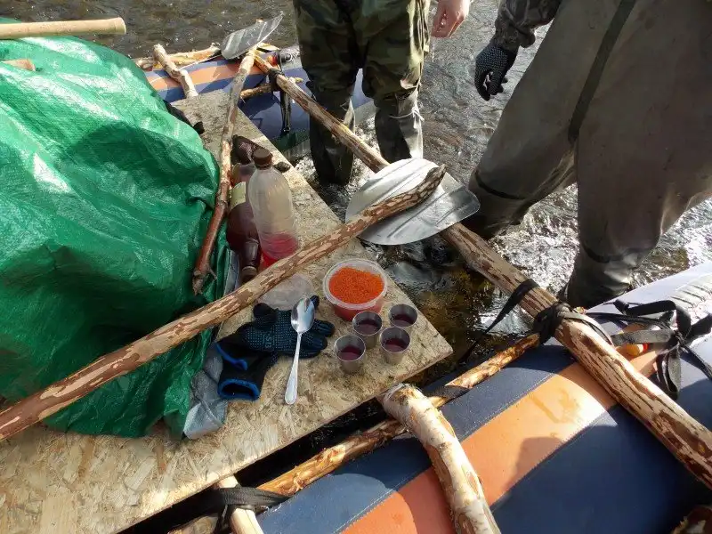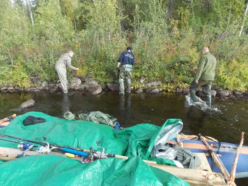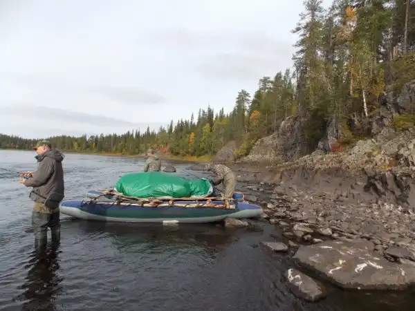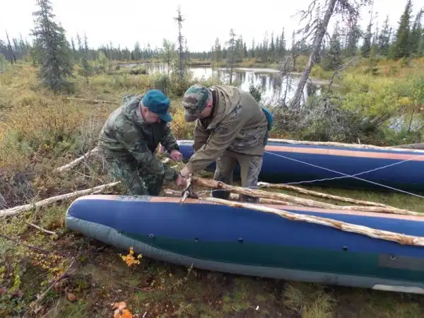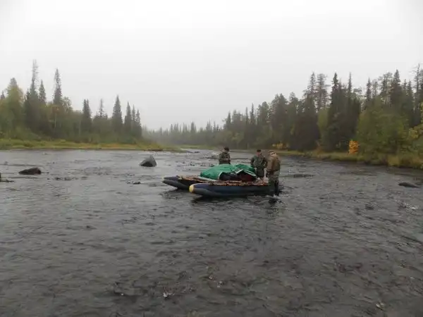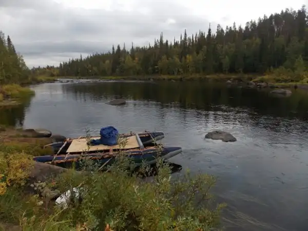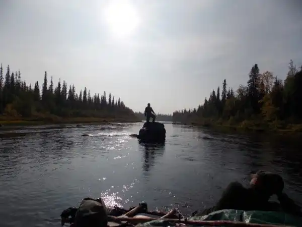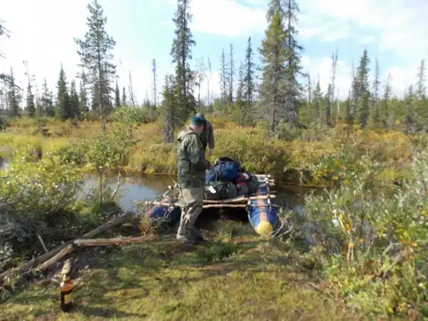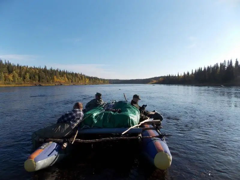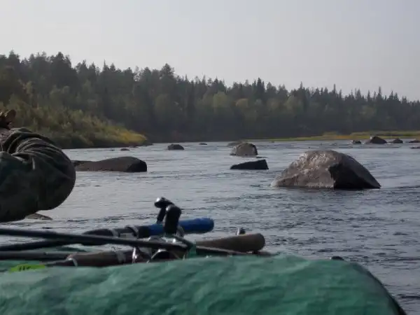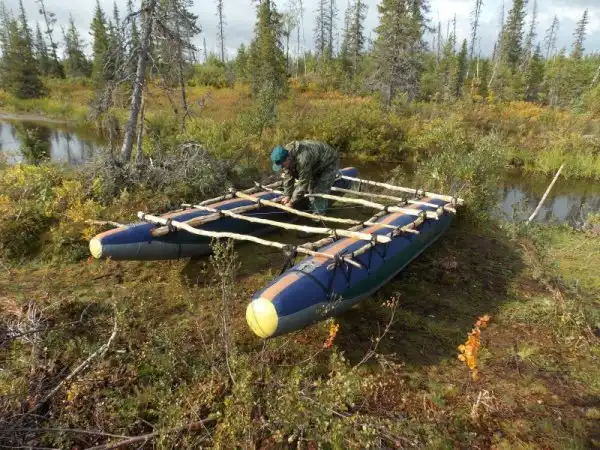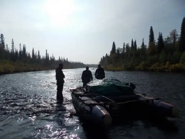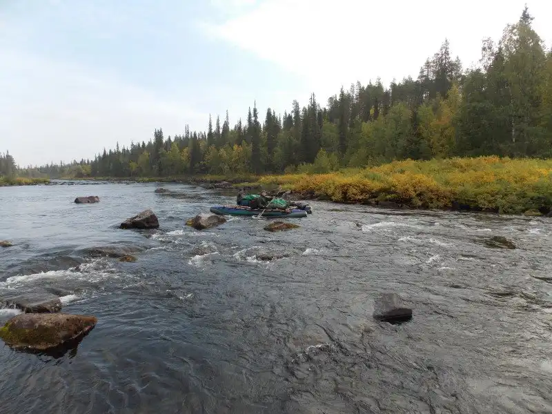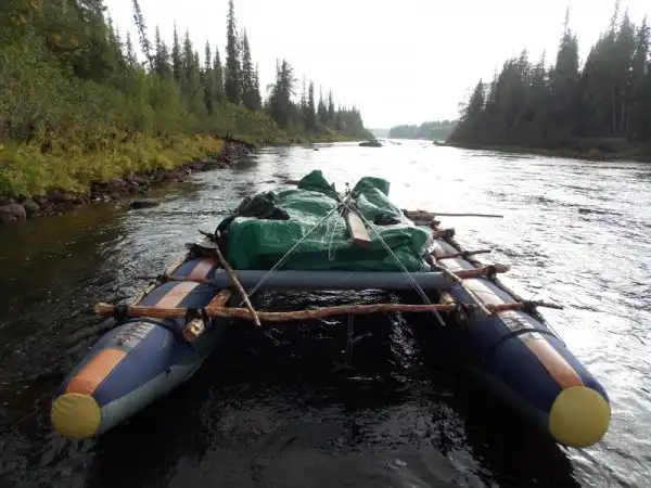 В сентябре уровень воды был маленький и катамаран таскать на себе приходилось часто