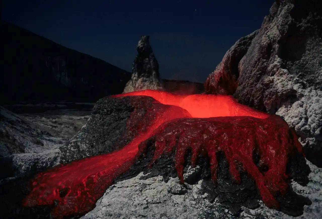 По цвету лавы можно определить, сколько дней лаве, это единственный вулкан на планете, который извергает такую лаву. На вершине слышится взрывы, что говорит о том, что вулкан является активным.