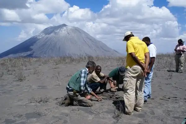 Многочисленные вулканы разбросаны по всему разлому великого африканского рифта длиной в 6000 километров, возрастом 30 миллионов лет. На вершине вулкана Оль Дойньо Ленгаи имеются белые потеки – следы лавы вылившейся из кратера. Оль Дойньо Ленгаи уникальный вулкан, такой лавы нет ни у какого другого вулкана мира. У подножия вулкана мирно пасутся жирафы. Оль Дойньо Ленгаи один из самых удивительных вулканов на планете. Восхождение на Оль Дойньо Ленгаи считается особенно трудным, учитывая его высоту 2962 метров и его крутые склоны.