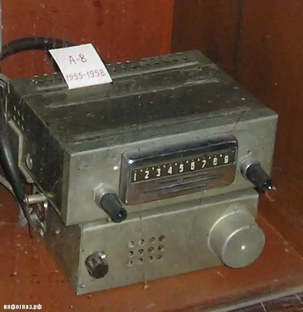 Радиоприемник «А-8″ предназначен для установки в автомобиле «Победа» (ГАЗ-20), в другом варианте оформления он устанавливается в автомобиле «Москвич».