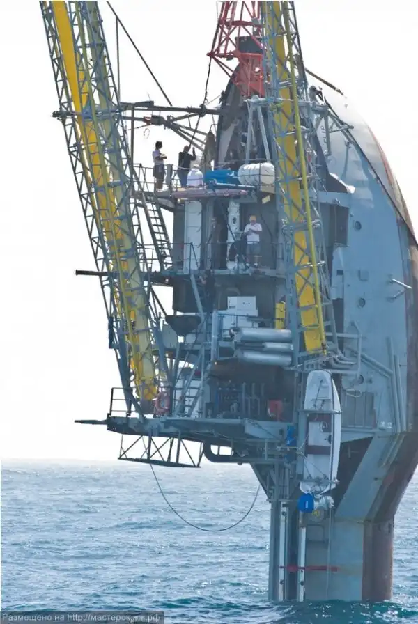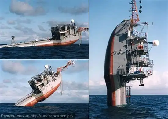 Интересно также, что и все помещения внутри спроектированы таким образом, что в равной степени могут использоваться как в горизонтальном, так и в вертикальном положении судна. Но самое интересное, что к месту исследований "Флип" добирается как обычный корабль — в горизонтальном положении.