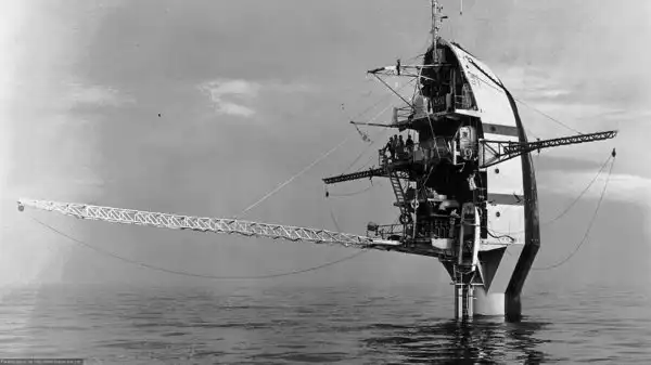 Полвека назад, в далеком 1960 году в разгар “холодной войны” США искали новые уникальные методы наведения ракет для модернизации своего атомного подводного флота. Для этого потребовалось провести акустические исследования в области распространения звуковых волн в водной среде. Чтобы выполнить поставленную задачу американские ученые Fred Fisher и Fred Spiess предложили военному руководству необычное, уникальное судно, получившее название "Флип".