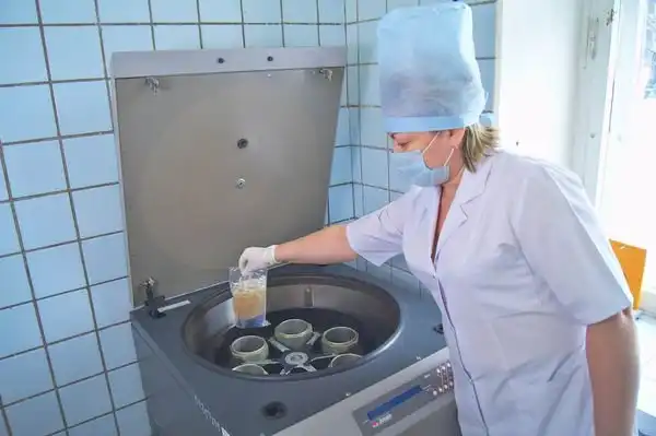 Остальную кровь сразу же разделяют на плазму и эритроцитарную массу. В специальной центрифуге за счет явления центробежной силы, клетки крови распределяются в соответствии с массой и плотностью: более крупные – эритроциты – оседают вниз, а плазма остается наверху.