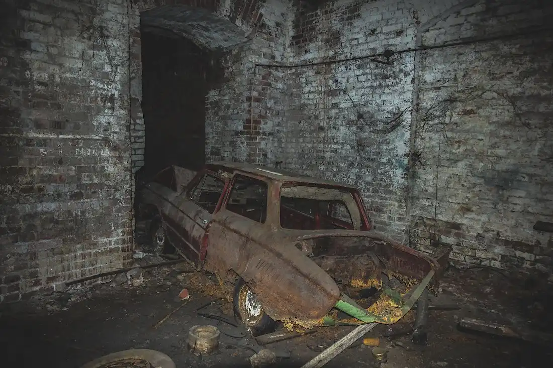 Хотя в Солянке давно не водятся барыги, тут и там сохранились покорёженные остовы гниющих авто.