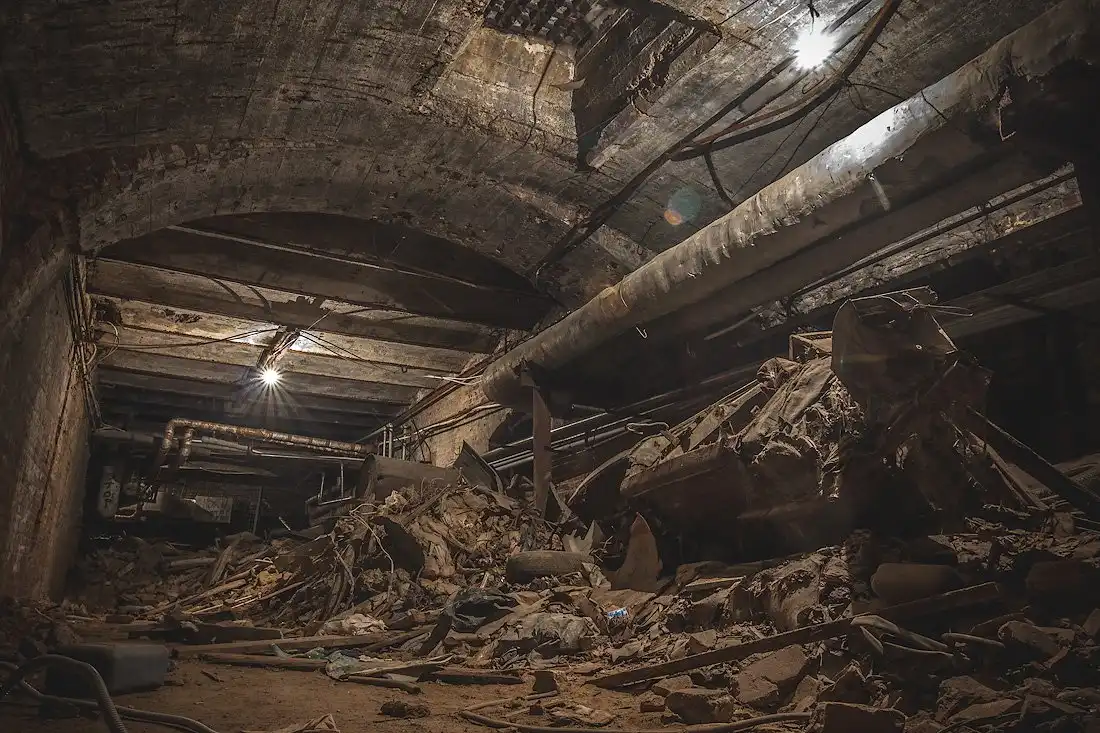 При наведении порядка мусор из подвала почти не вывозили, а лишь сгребли бульдозером в дальние помещения.