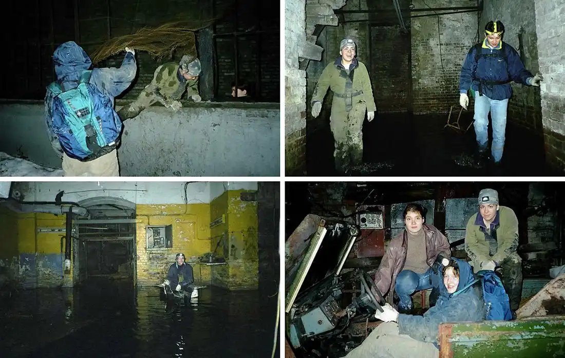 Есть и фотографии посещения Солянки в 2002 году. Тогда часть системы была по щиколотку затоплена, повсюду стояли разбитые машины, а залаз осуществлялся через сломанную решётку автомобильного въезда. Внутрь можно было попасть без проблем, чем и пользовались многочисленные диггеры, игруны, бомжи и разного рода алкоголики.