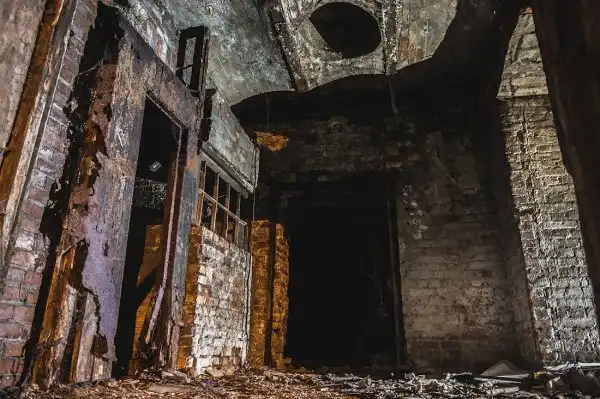 В результате в коридорах относительно чисто, тогда как проход в боковые помещения перекрыт горами кирпичей вперемешку с бутылками.