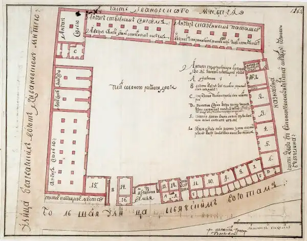 В XVI веке на углу «улицы от Варварских ворот к Ивановскому монастырю» и «большой улицы к Яузским воротам» богатым купцом Никитниковым был устроен Соляной рыбный двор. Здесь хранили и торговали солью и особым её сортом — поташом (карбонатом калия), а также солёной рыбой. Ансамбль имел обширный внутренний двор, обстроенным складами (амбарами) и лавками. Главные ворота отмечала высокая башня с караульней, а рядом были ещё одни, малые ворота. Уличных окон на первом этаже не было — для защиты от воров. Торговые лавки имели отдельные входы. Амбары для хранения соли были устроены со сводами, опиравшимися на мощные столбы. Вероятно, они имели подвальный этаж, не уступавший по площади надземному.