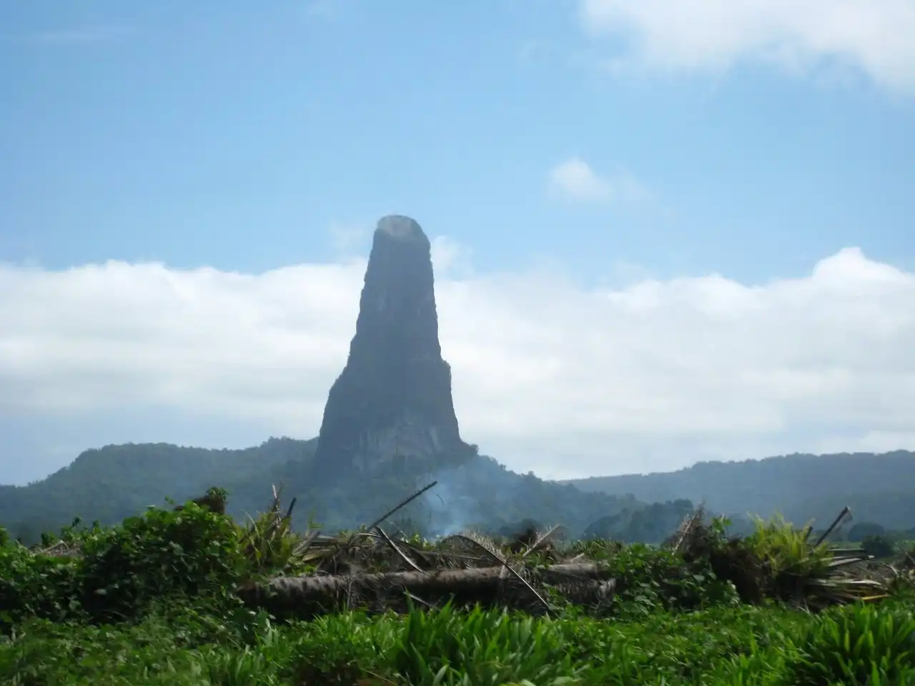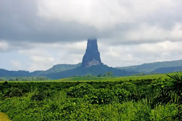 Вот еще одну необычную гору я нашел на просторах интернета. Называется она — Pico Cão Grande, что переводится как Пик Великой собаки и расположена на небольшом остров Сан-Томе в Гвинейском заливе у берегов Африки
