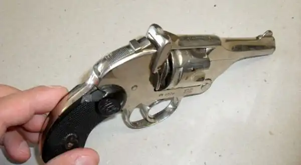 Курок – эта такой рычажок, который расположен позади барабана и служит для удара по капсюлю патрона (нажать на него можно большим пальцем – это и называется «взвести курок»). Так вот, курка у нашего «герсталя» не было. Вернее, быть-то он, конечно был (иначе револьвер не мог бы стрелять), но был скрыт в корпусе.