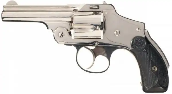 Впервые до такой конструкции додумались конструкторы «Смит анд Вессона» в 1887 году – то есть, на одиннадцать лет позже наших гипотетических конструкторов «герсталя». И хотя у получившегося «Смит-Вессона» всего лишь пять патронов в барабане, но, тем не менее, эта пушка уже может быть кандидатом в прототипы фандоринского оружия.
