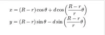 Фигура, получаемая с помощью простейшего спирографа из двух кругов, когда маленький (радиуса r) с отверстием на расстоянии d от центра, вращается в большом (радиуса R), называется гипотрохоидой. Её формула в декартовых координатах: