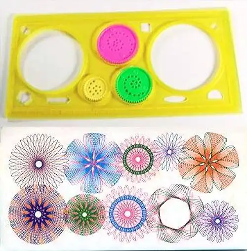 Узоры, получаемые при помощи спирографа, напрямую зависят от количества зубчиков рабочих окружностей и подвижных колесиков.