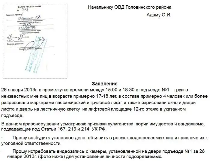 Надоели расписанные стены в подъездах жилых домов и различных общественных местах? Бороться с подобным хулиганством предлагают при помощи видеокамер и заявлений, подобно тому, которое вы найдете ниже.
