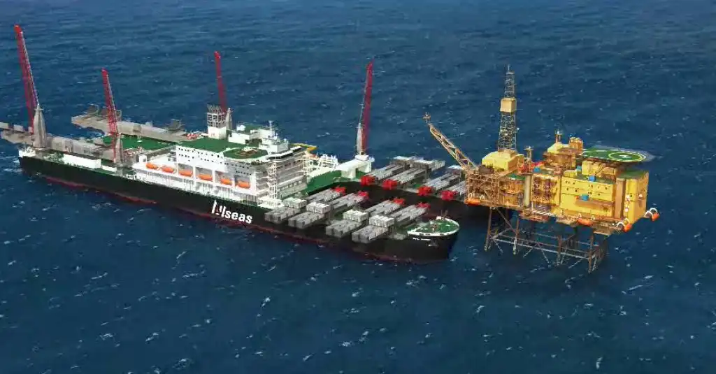 Предназначения этого монстра – инсталляция и вывод из эксплуатации массивных оффшорных сооружений таких, как нефтегазовые платформы, например.