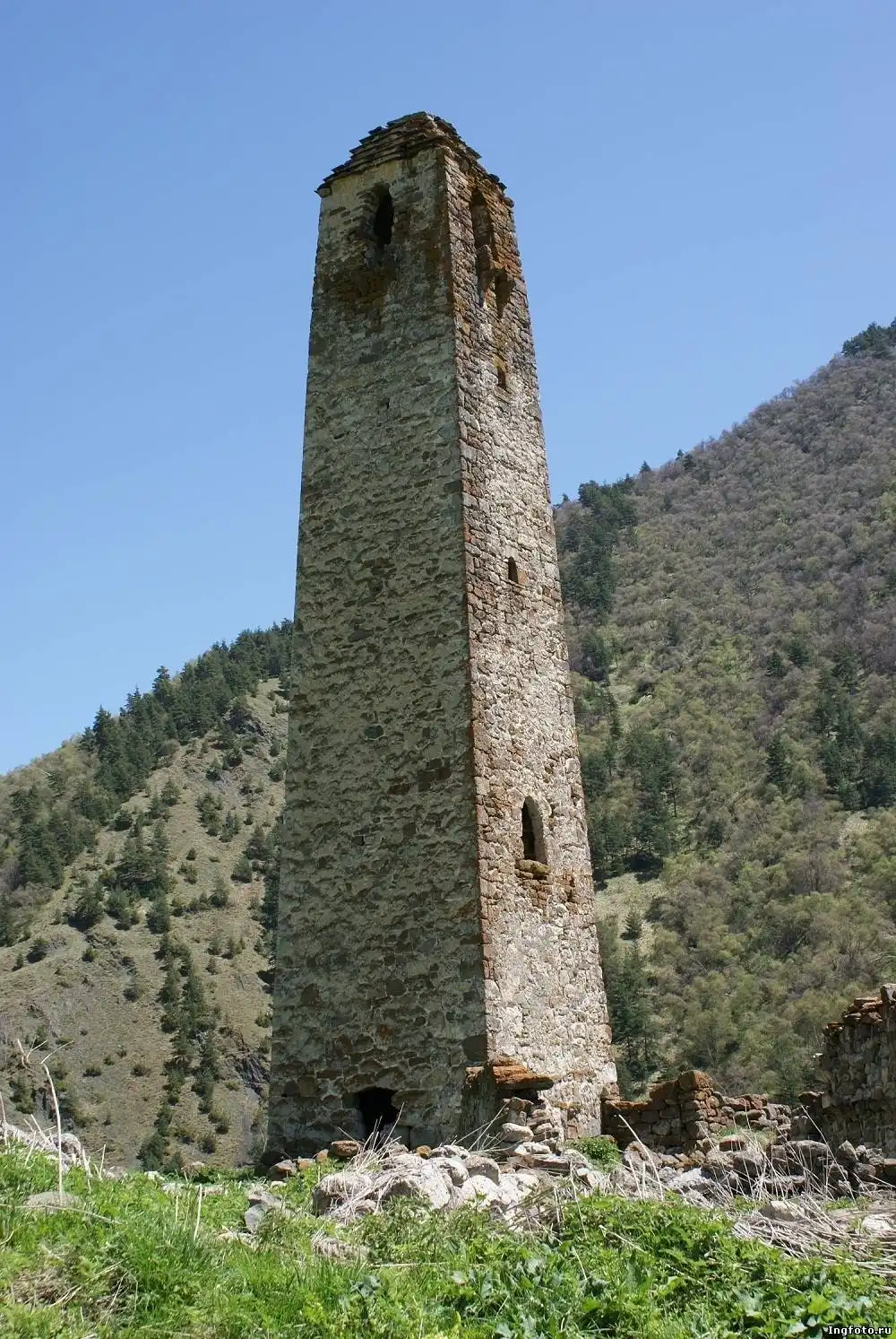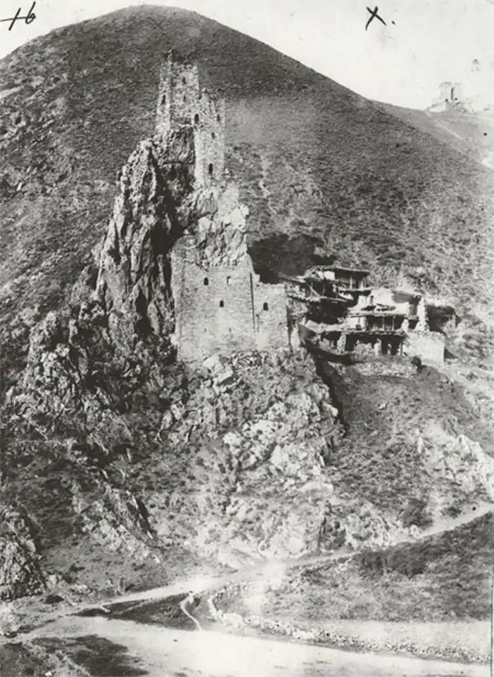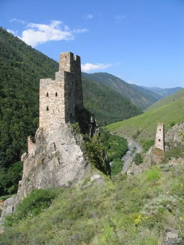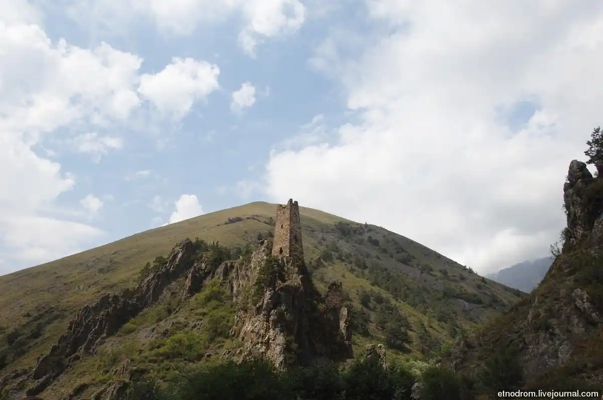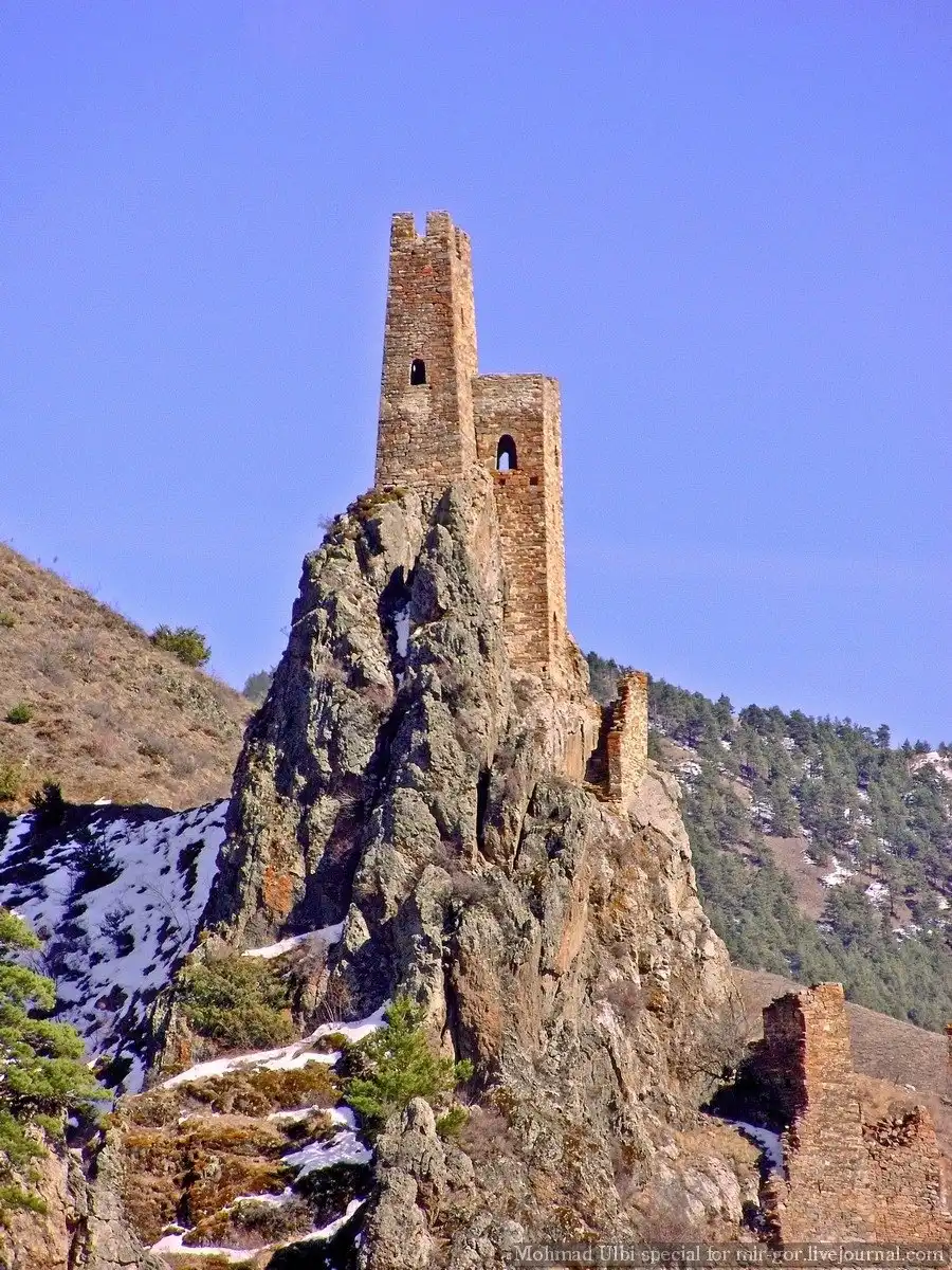 Культ камня ― именно так можно вкратце охарактеризовать самую суть этого строения. Это удивительно, но две массивные боевые башни были возведены безо всякого фундамента. Фактически они стоят на сланцевых скалах. Вполне распространенная строительная технология того времени: на предполагаемое место строительства, на землю, лили молоко. Весь грунт, сквозь который оно просачивалось, убирали и лили дальше ― до тех пор, пока молоко переставало впитываться. После этого ставили самые первые камни огромных размеров, больше человеческого роста, которые обеспечивали устойчивость конструкции. «При удивительной стройности, пропорциональности и довольно большой высоте, они устойчивы и прочны», ― писал о военных ингушских башнях художник Щеблыкин, оставивший довольно много исследований об этом месте и зарисовок местных сооружений. Для транспортировки камней использовался специальный ворот для подъема.