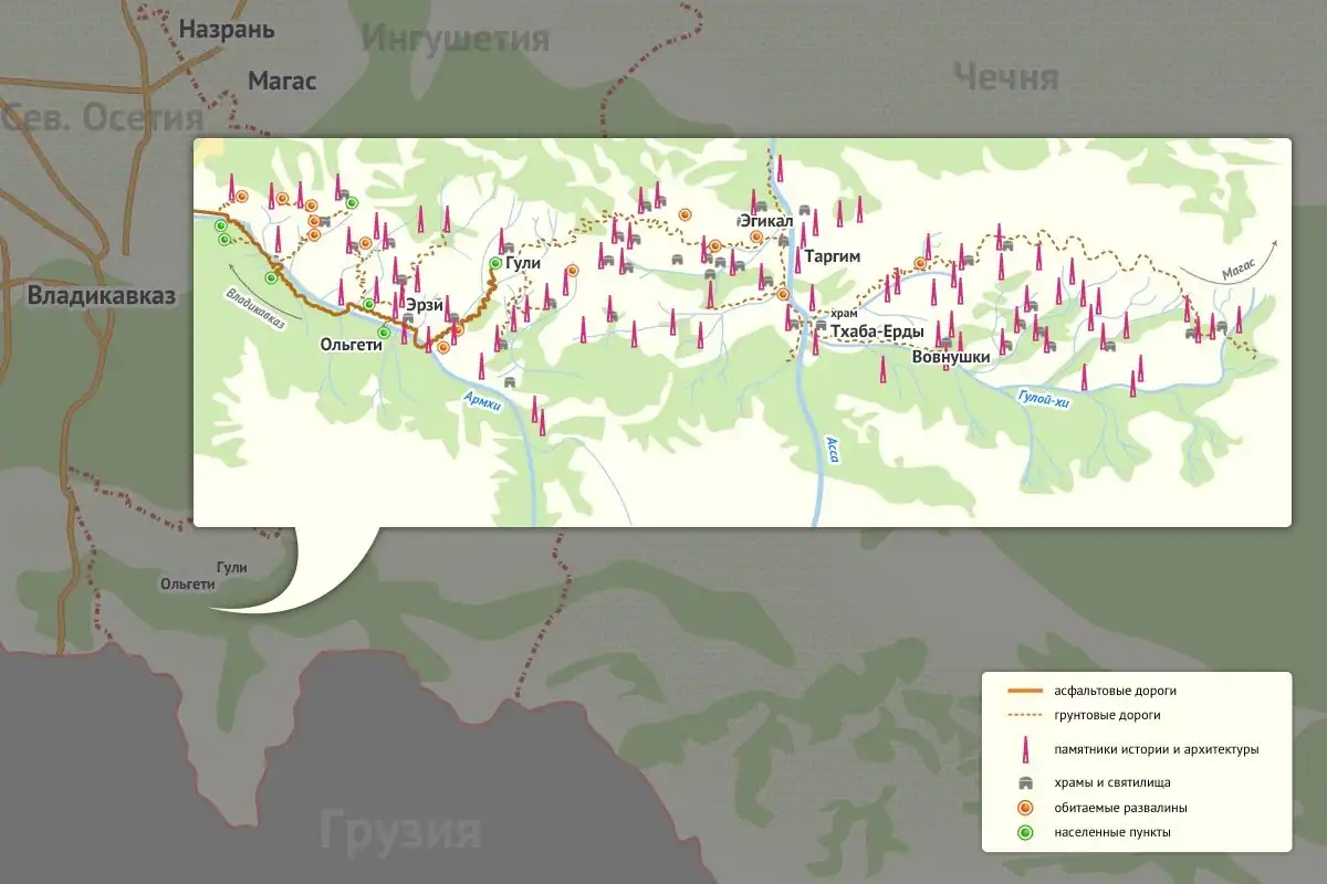 «Вовнушки» входят в состав Джейрахско-Ассиновского музея-заповедника. Историки и искусствоведы считают его одним из шедевров средневековой архитектуры, а вообще этнокультурные следы ингушей уходят аж в новокаменный век. Экскурсанты, сопровождаемые подробным рассказом гида о событиях, связанных с этим необычным замком, хорошо себе представляют, как эти башни в свое время встречали торговые караваны Великого шелкового пути и отражали набеги жадных до них разбойников.