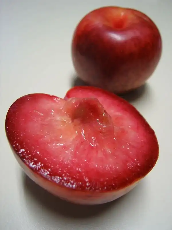 Плуот снаружи бывает зеленого, фиолетового, бордового или розового цвета. А внутри может быть как белым, так и насыщенно сливовым. Он имеет очень сочную мякоть, вкус которой напоминает абрикос. Внешне же плуот больше походит на сливу.